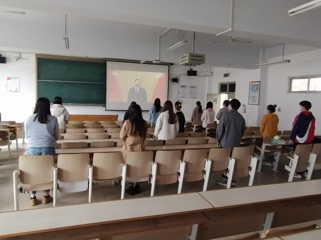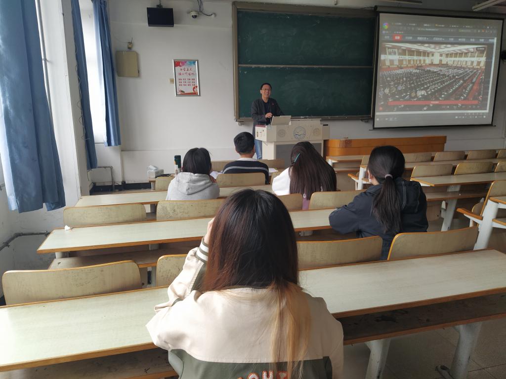 5月10日beat365亚洲版官网组织40多名在校生在昌黎校区C307教室观看了现场直播,学院党委副书记副院长孙胜显、团委书记王明洁与同学们一起观看了直播。同学们各位就坐、全程佩戴口罩。会后,孙书记与同学们一起进行了思想交流。