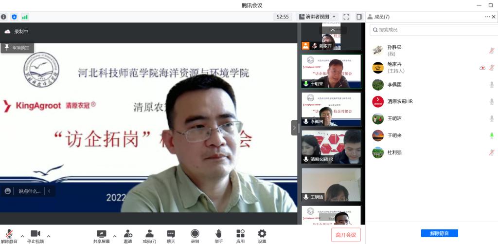 4月25日,beat365亚洲版官网分别召开与山东宝来利生物工程股份有限公司、清原农冠集团访企拓岗座谈会。学校党委副书记李佩国、学院党委书记于明来、学院党委副书记孙胜显、学院副院长张文香、水产教学部主任葛慕湘、海洋生物资源教学部主任杜利强、2022届毕业生班主任、学工办就业负责人共同参加并作交流。会上,校企双方介绍了各自的情况,并针对行业需求、人才培养等方面开展了深入的交流